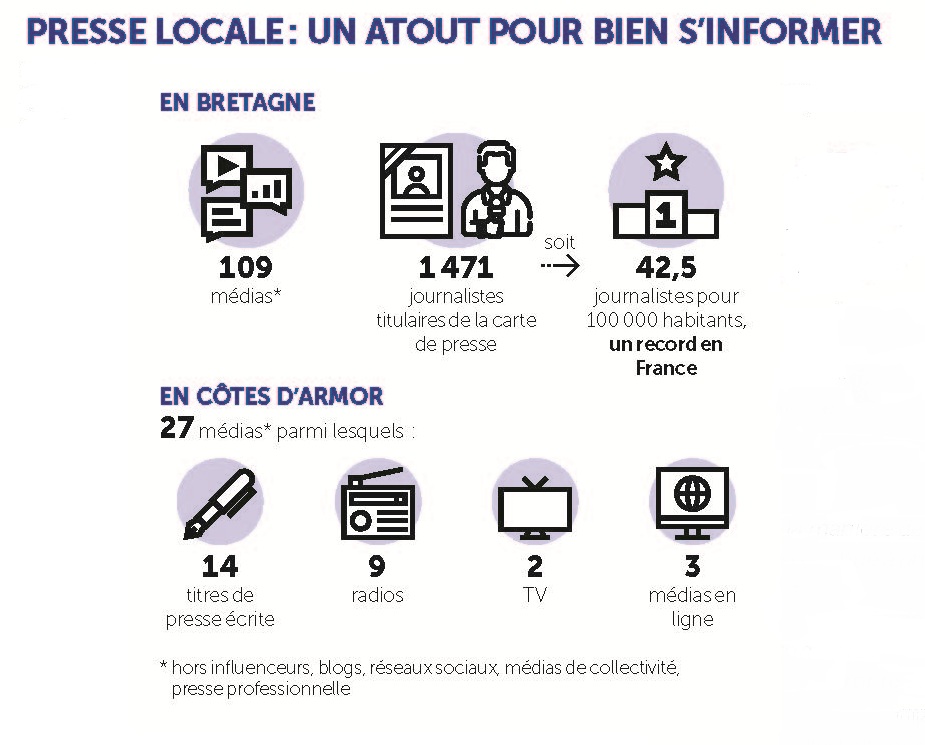 La principale explication, c’est qu’on a en Bretagne deux quotidiens régionaux, avec Ouest France, qui est le premier quotidien de France, et Le Télégramme qui est aussi l’un des groupes de presse régionaux les plus dynamiques. C’est assez déterminant car rien qu’avec ces deux titres, on atteint à peu près la moitié des cartes de presse de Bretagne. Après, on a tout le paysage des médias associatifs, à commencer par les radios qui sont nombreuses, puis des magazines de presse ou des médias en ligne indépendants. Et bien sûr, il y a le service public audiovisuel, France Bleu et France 3, qui sont aujourd’hui regroupés sous la marque Ici. Derrière tous ces médias, on voit qu’il y a un bon maillage du territoire et qu’il n’existe pas aujourd’hui en Bretagne de déserts informationnels.