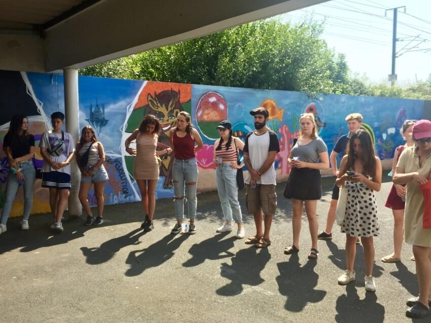 21 participants âgés de 18 à 25 ans ont ainsi eu l’occasion de graffer une fresque originale au cours de leur séjour sur les murs de la Ligue de l’Enseignement, en présence du directeur technique du festival Just Do Paint, Nicolas, alias « papy ». Ils auront également participé et découvert au fil des jours différentes facettes de la culture urbaine (light painting, scratch, danse hip hop).