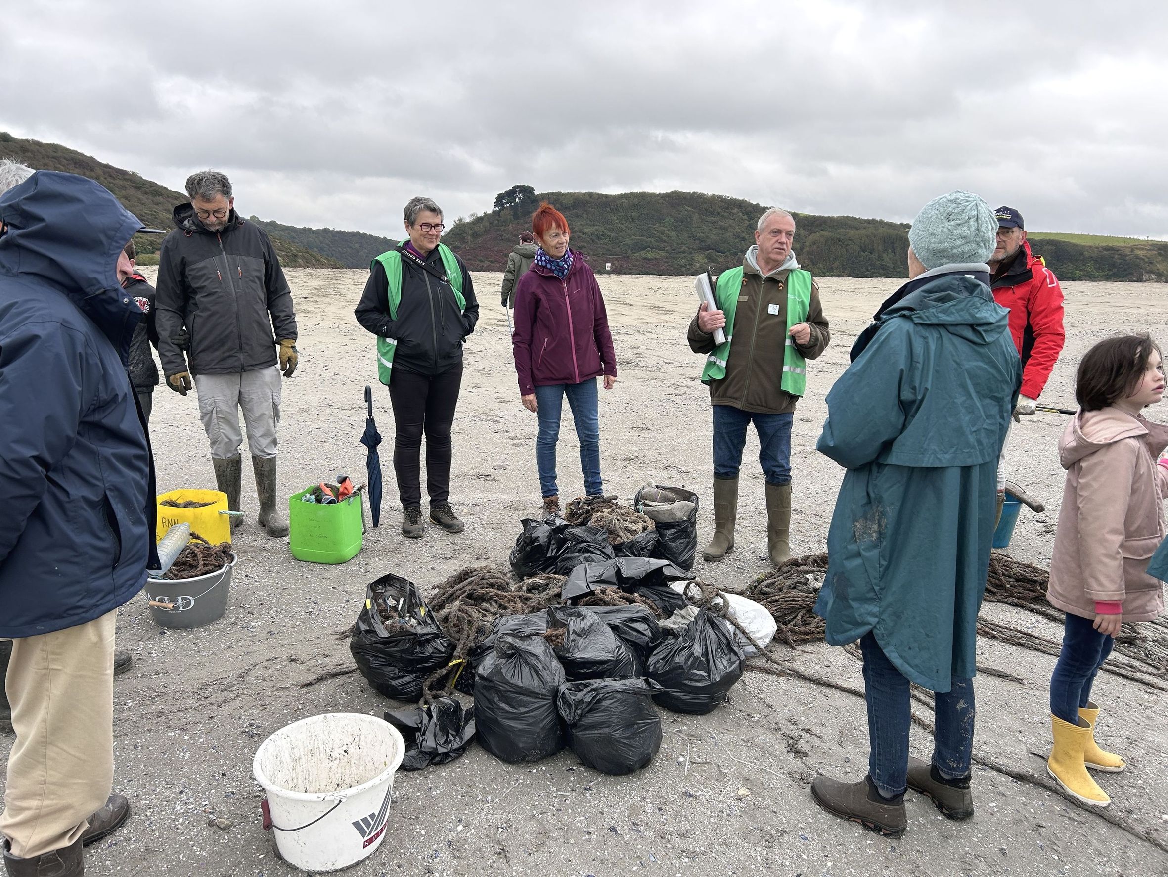 L’opération de nettoyage de la plage Saint-Maurice, à Morieux, en ce 29 octobre 2025, est l’une des actions menées par Vivarmor Nature et Saint-Brieuc Armor agglomération, toutes deux co-gestionnaires de la Réserve naturelle de la baie de Saint-Brieuc. Une vingtaine de bénévoles de 6 à 85 ans ont collecté 194,86 kilos de déchets, composés pour l’essentiel de cordages de mytiliculture. Autour de Juliette Chevreuil, garde-technicienne, qui pèse seaux, sacs et collecteurs en tout genre avec une balance à crochet, on anticipe, on calcule, on parie sur les quantités ramassées dans une joyeuse pagaille de fin de collecte, les joues rouges et les cheveux au vent, après avoir arpenté la plage tout l’après-midi.