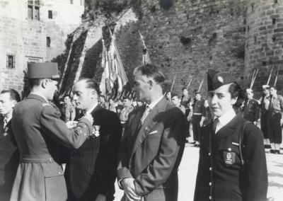 Germaine Quoniam reçoit la Croix de guerre des mains du général Leclerc. DR