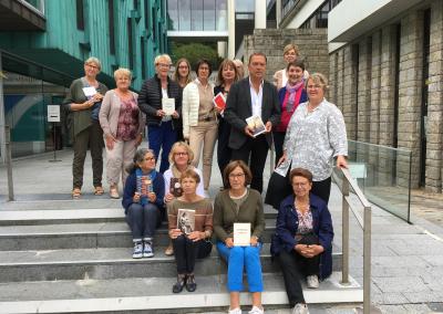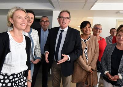Alain Cadec président du Département entouré de la Principale du Collège Jean XXII, de Brigitte Balai-Mizrahi vice présidente chargé de l'éducation et de représentants de l'enseignement catholique