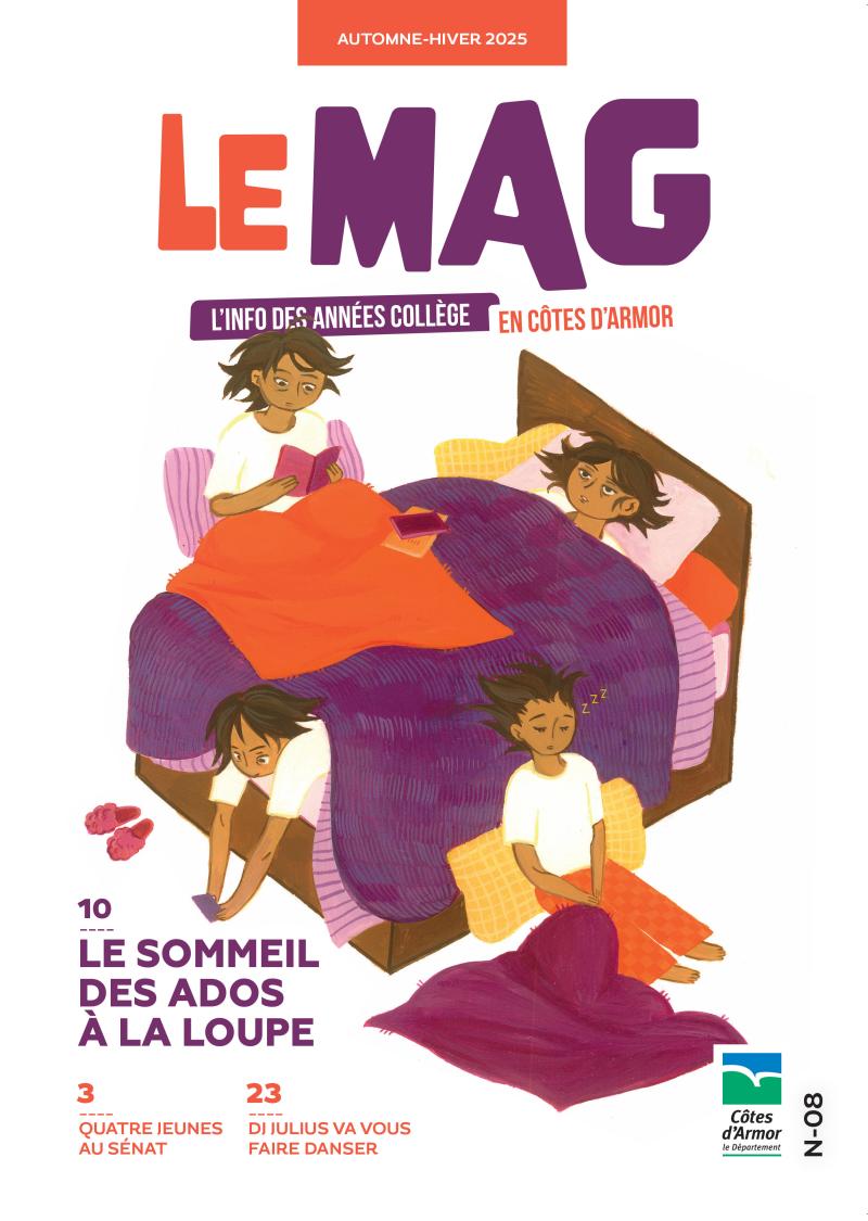 Quand on est collégien ou collégienne, la vie est trépidante, pleine de projets, d’envies mais aussi de questions. Pour t’accompagner de la 6e à la 3e, le Conseil départemental des Côtes d’Armor t’offre Le Mag’, un semestriel plein d’actus, de conseils, de reportages et d’idées... Une revue sympa pour et par les jeunes !
